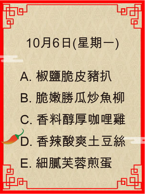 *(以上食材,或會因貨源供應有所更改,不作另行通知,本公司保留最終決定權。便當內食物成份可能含有對某類食物有過敏之人士,請自行篩選進食,食用後產生健康問題,本公司一律不會承擔任何責任。)*