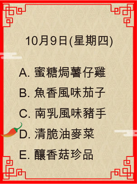 *(以上食材,或會因貨源供應有所更改,不作另行通知,本公司保留最終決定權。便當內食物成份可能含有對某類食物有過敏之人士,請自行篩選進食,食用後產生健康問題,本公司一律不會承擔任何責任。)*